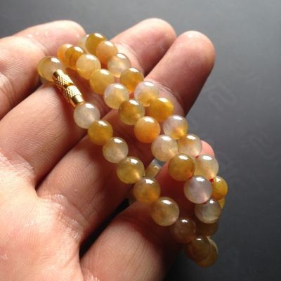 相对于翡翠手镯,翡翠手串没有那么常见,但