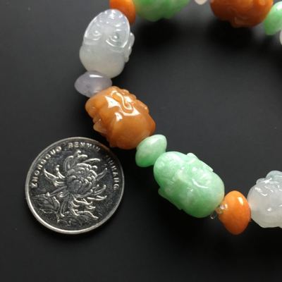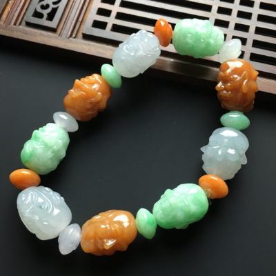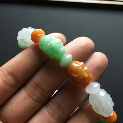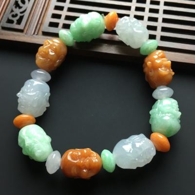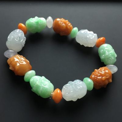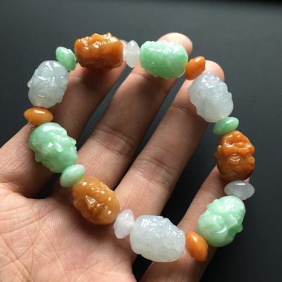 糯冰三彩翡翠罗汉手链17-14-12mm