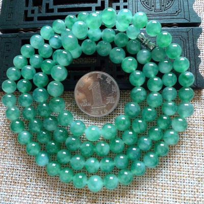 翡翠A货 老坑冰飘绿全胶感 塔珠翡翠项链