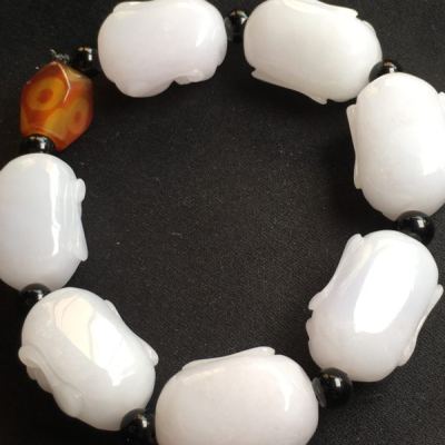 白翡翠珠子手串相对于其他色彩艳丽的翡翠手