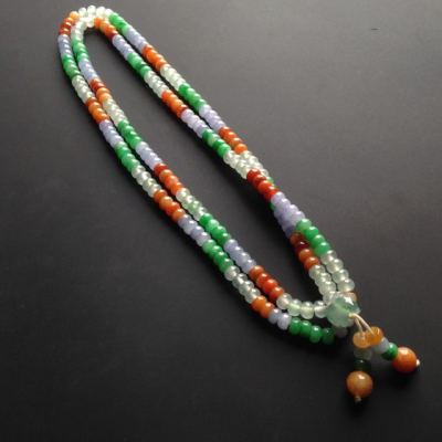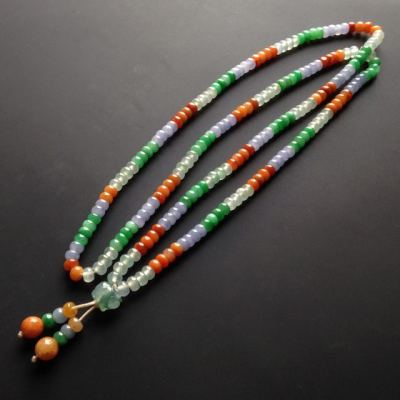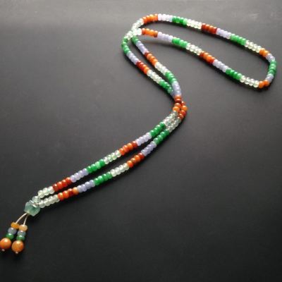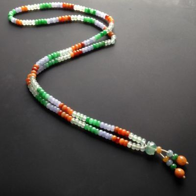 糯冰种多彩翡翠项链 212颗 单颗尺寸5.5-3.5mm
