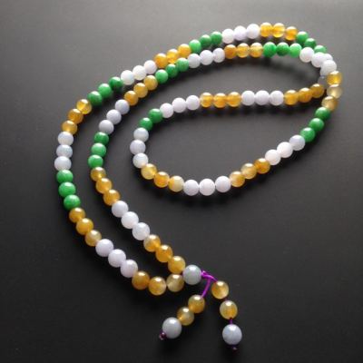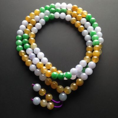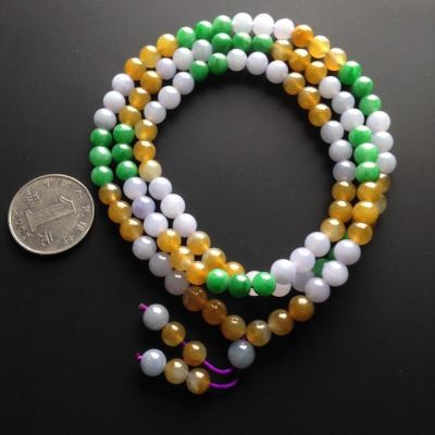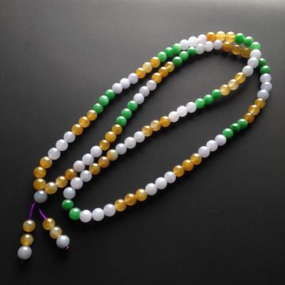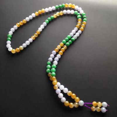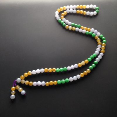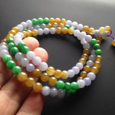 糯冰种多彩翡翠项链 117颗 单颗尺寸6mm