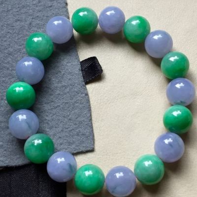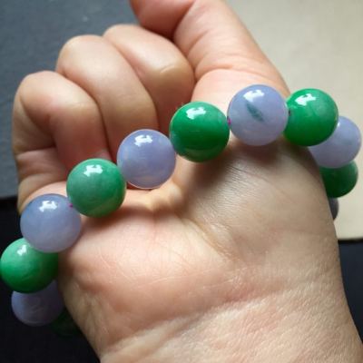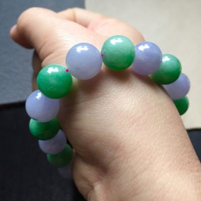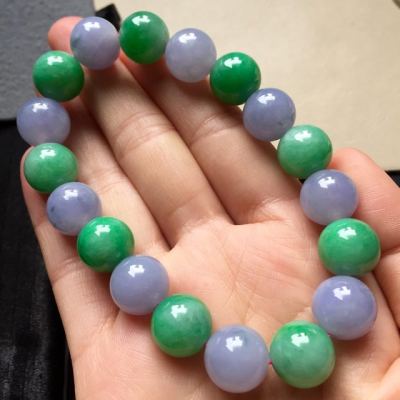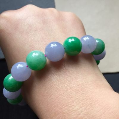 相对于翡翠手镯,翡翠手串没有那么常见,但