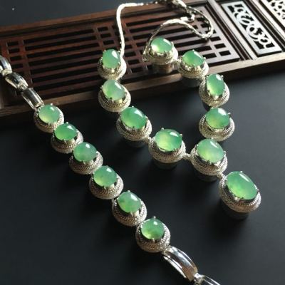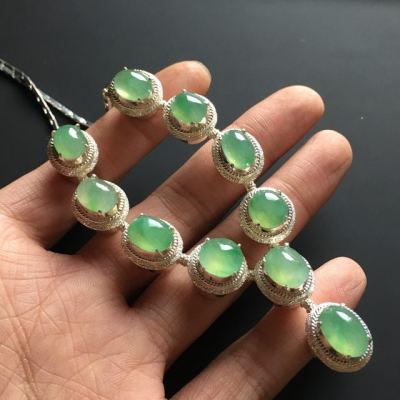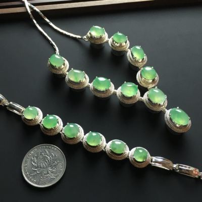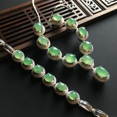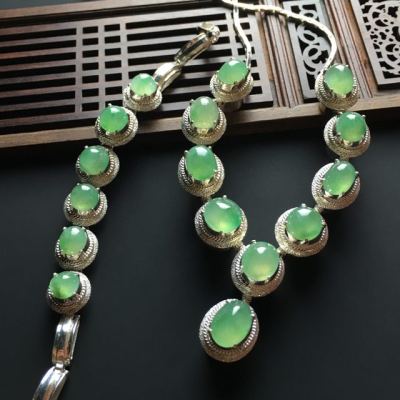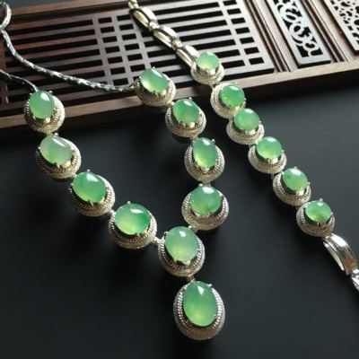 冰晴绿蛋面翡翠套链 12-9-5*10-10-5mm