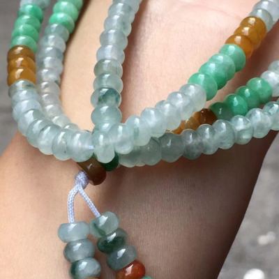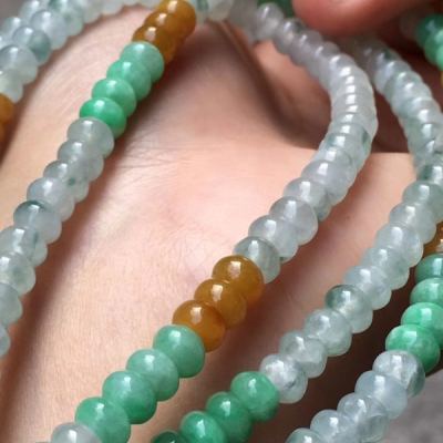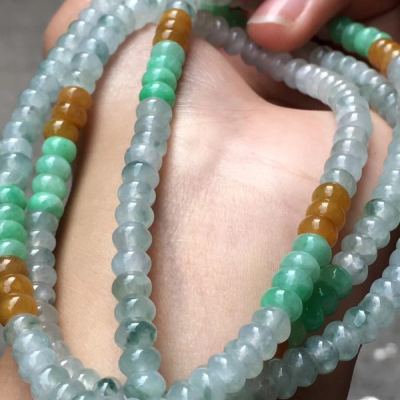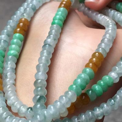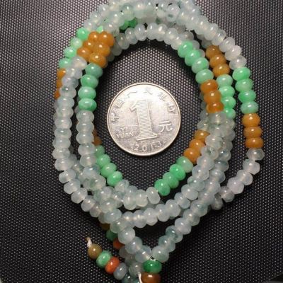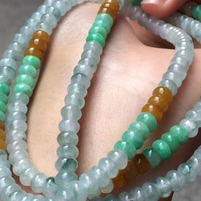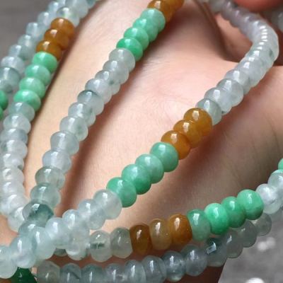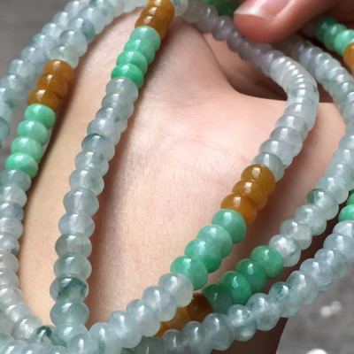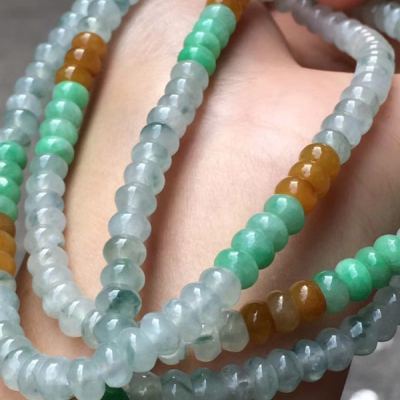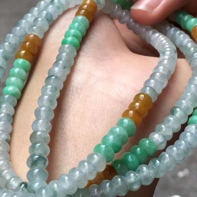 糯冰种水润起光多彩翡翠珠链5.5*3.5mm