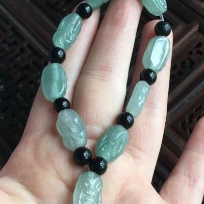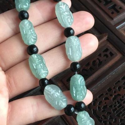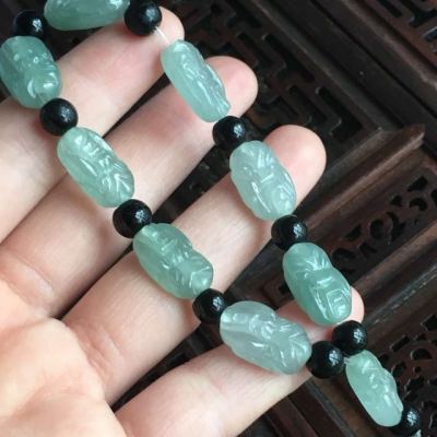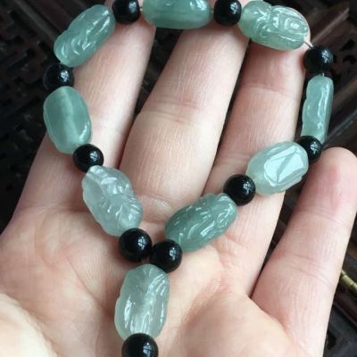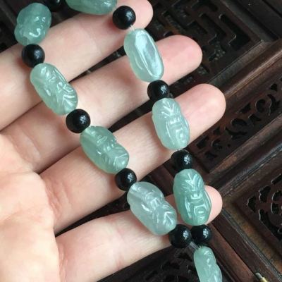 天然A货翡翠 冰糯种蓝水罗汉手链