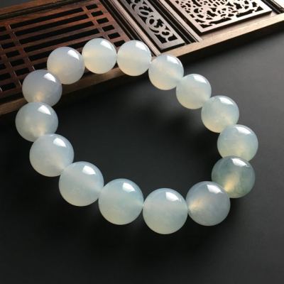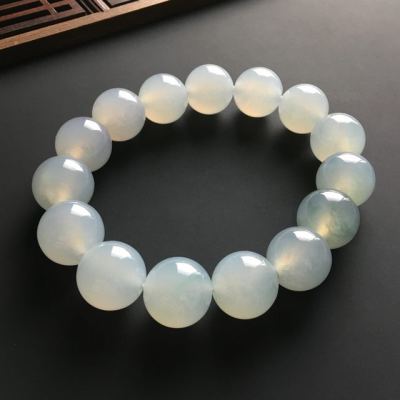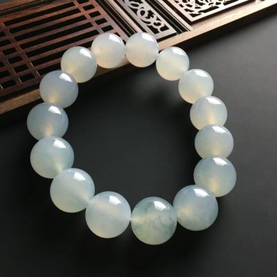 冰飘花佛珠翡翠手链 单颗直径14mm