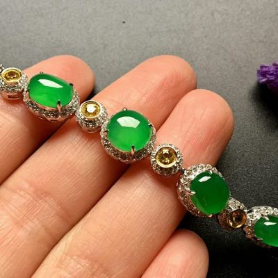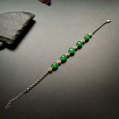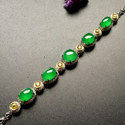 18k真金镶嵌 冰种帝王绿翡翠手链