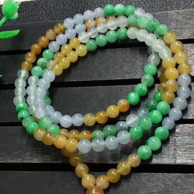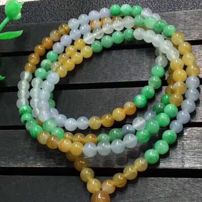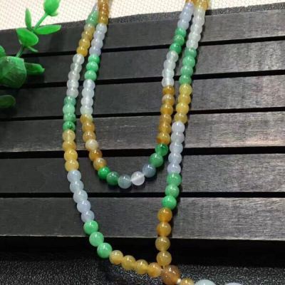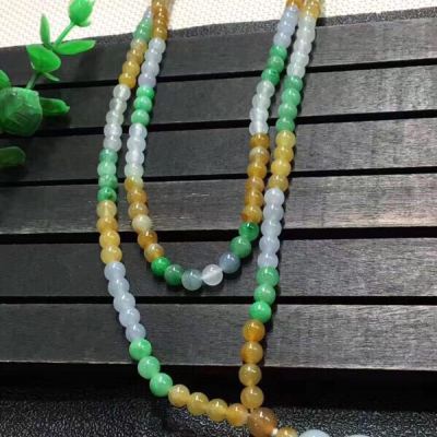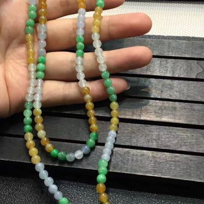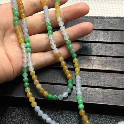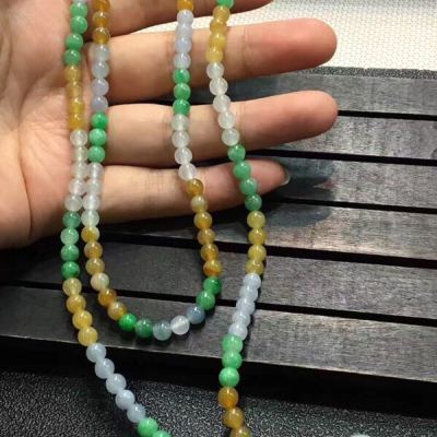冰地三彩料翡翠珠链 珠子5.4*5.4mm左右