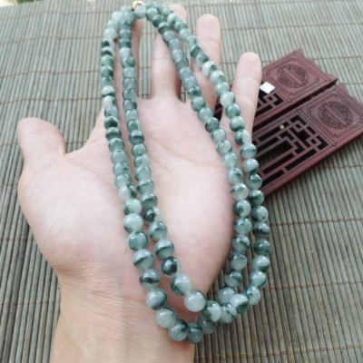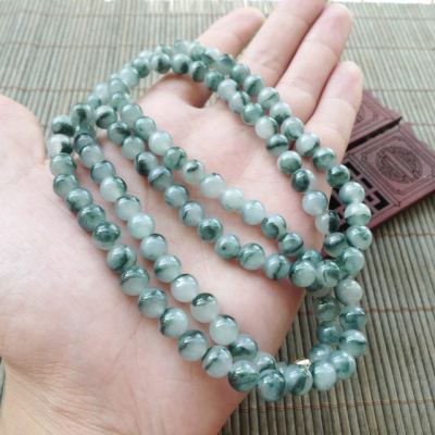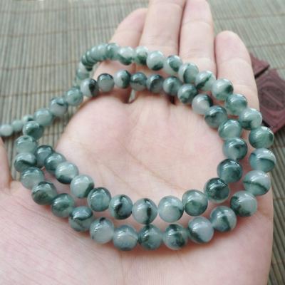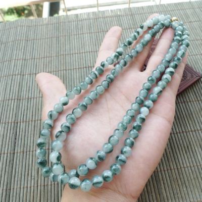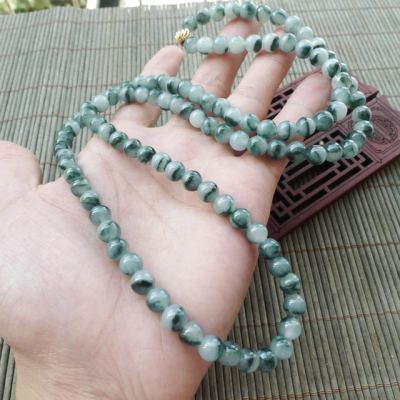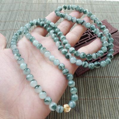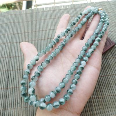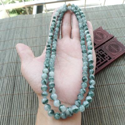 冰种飘花天然翡翠项链 珠大7.5mm