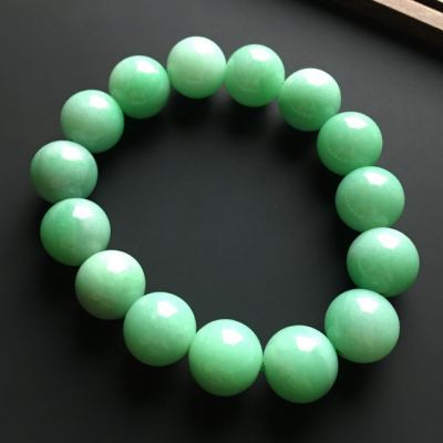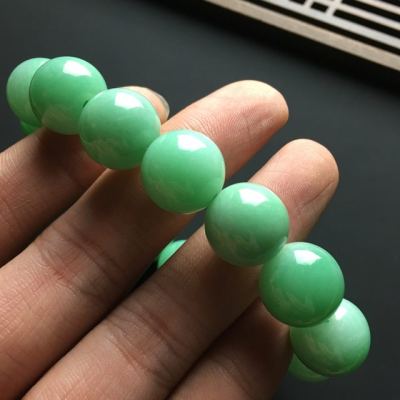 满色天然翡翠佛珠手链 直径15毫米