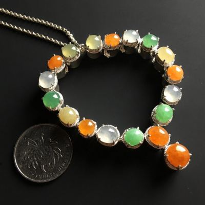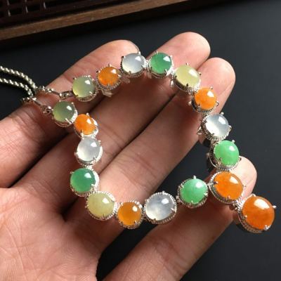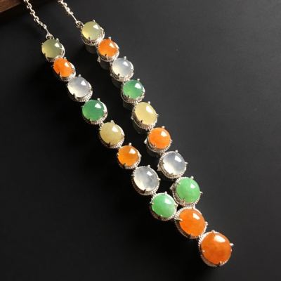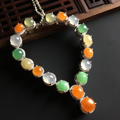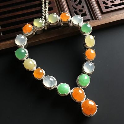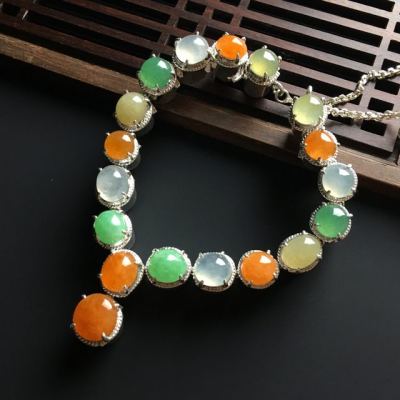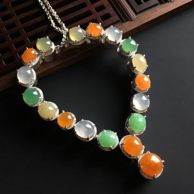 多彩蛋面翡翠项链 8-7-4.5毫米