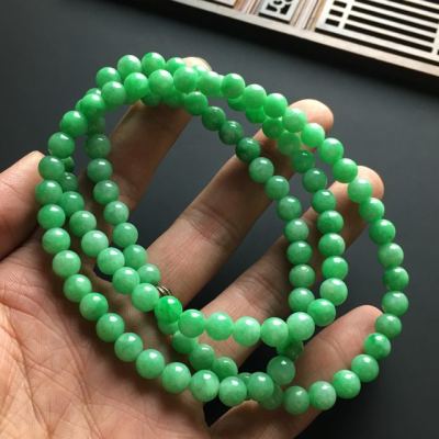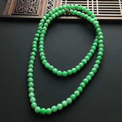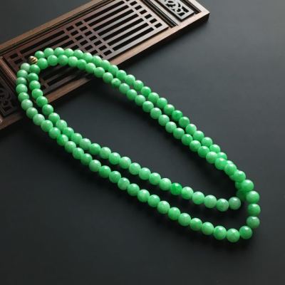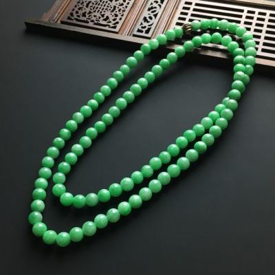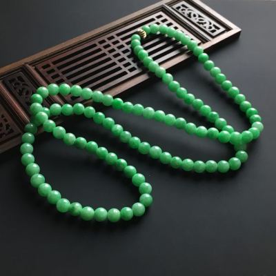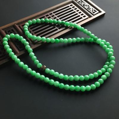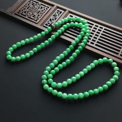 阳绿佛珠翡翠项链 单颗直径7毫米