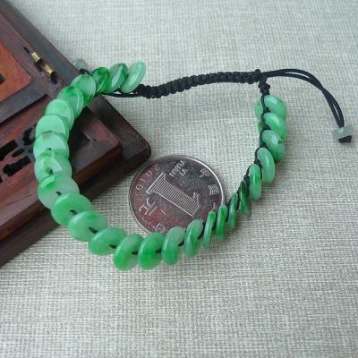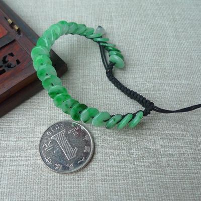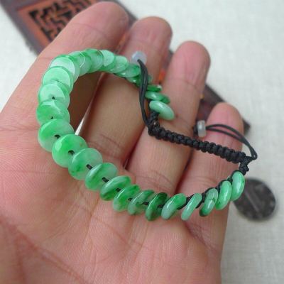 辣绿水润平安扣翡翠手链 规格9mm*26颗