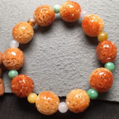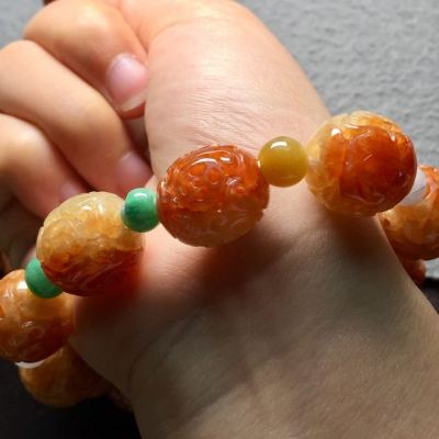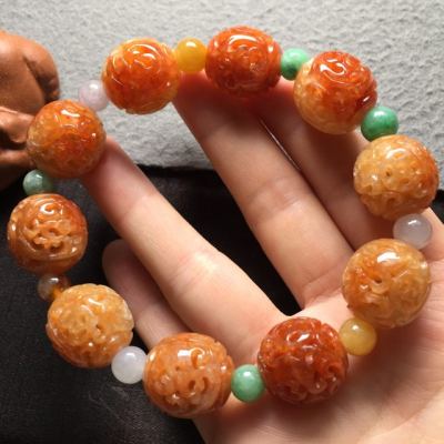 冰红雕花翡翠手串16*15.6