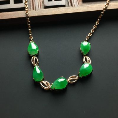 冰阳绿水滴翡翠项链 单个尺寸8.5-6-3.5毫米