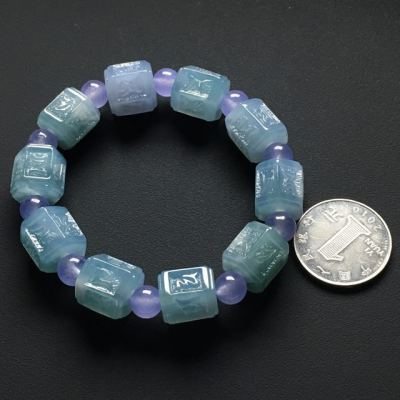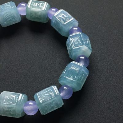 冰种飘花六字真言手串 13-12.5毫米