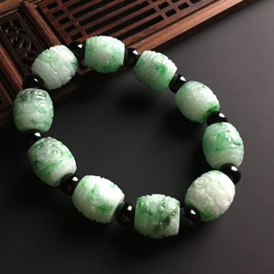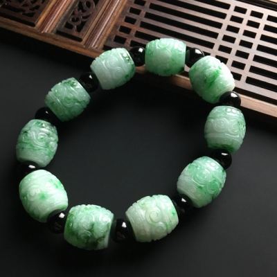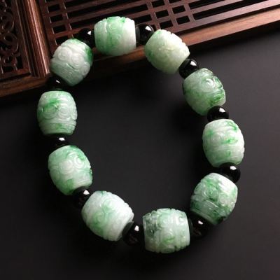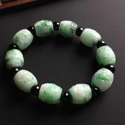 带色复古路路通翡翠手链 单个尺寸16-15毫米