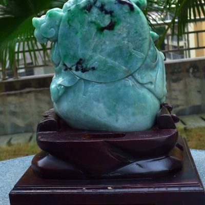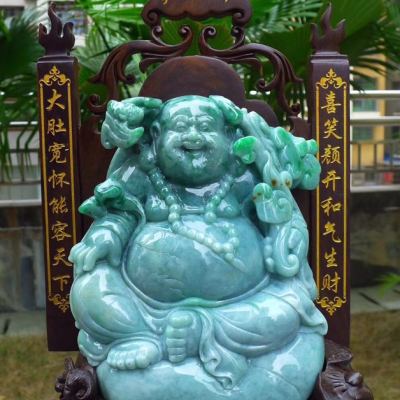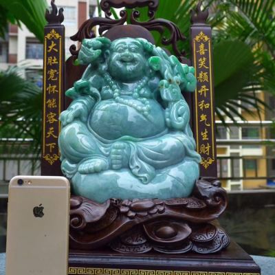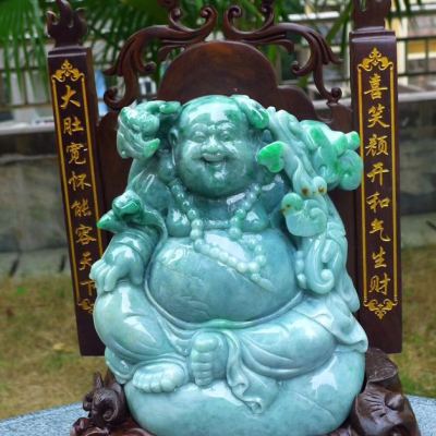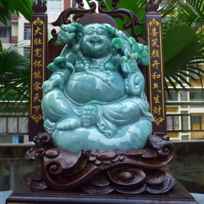 糯冰春彩飘花 大尊笑佛翡翠摆件