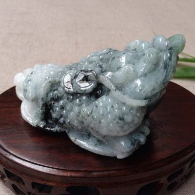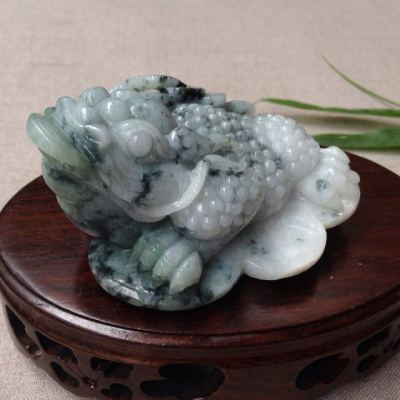 糯冰飘花 招财进宝三脚蟾翡翠摆件