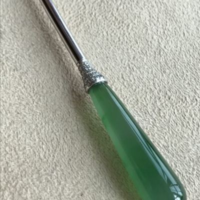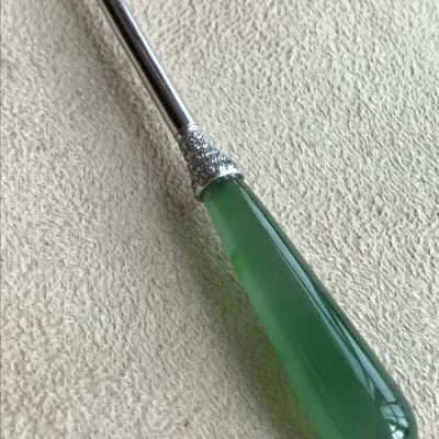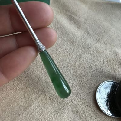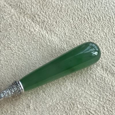 冰种满绿翡翠玉金钗