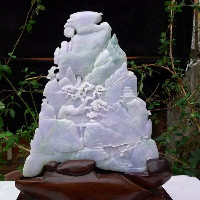 老坑糯冰紫罗兰飘花 大山水翡翠摆件