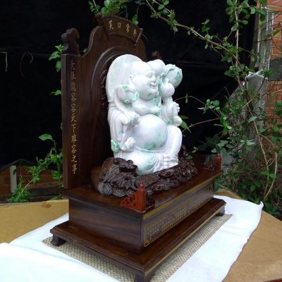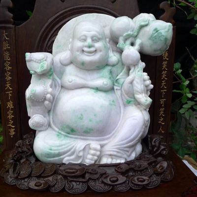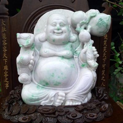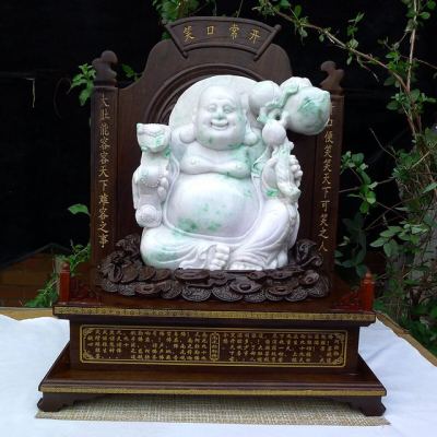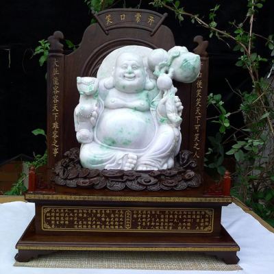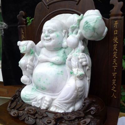 糯种紫罗兰飘绿花大弥勒佛翡翠摆件