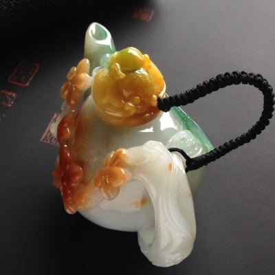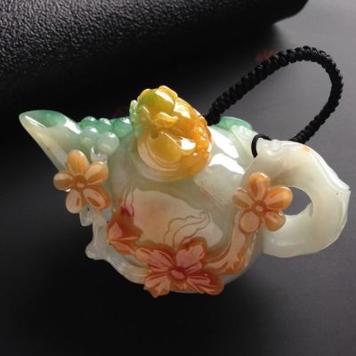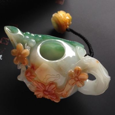 瑞丽工陈柯柯作品 冰种黄加绿翡翠茶壶
