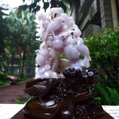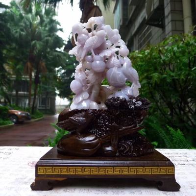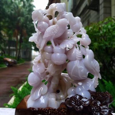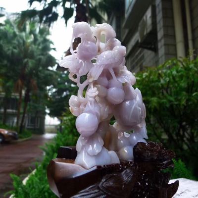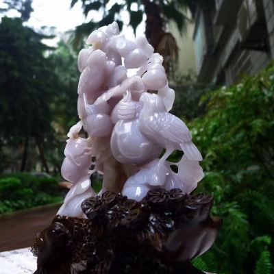老坑糯冰浅紫 翡翠A货 福禄双全葫芦摆件