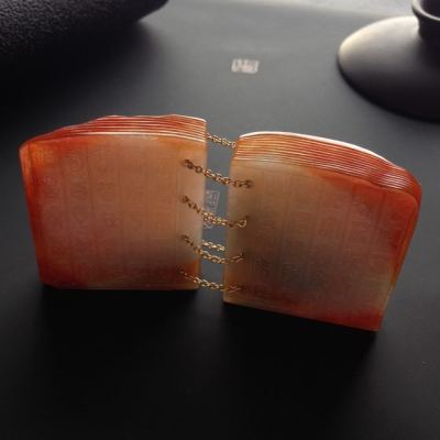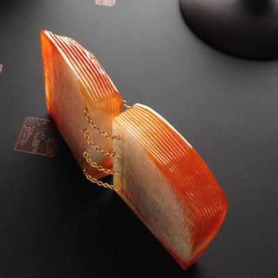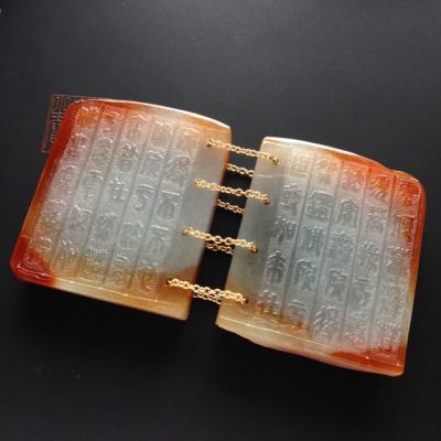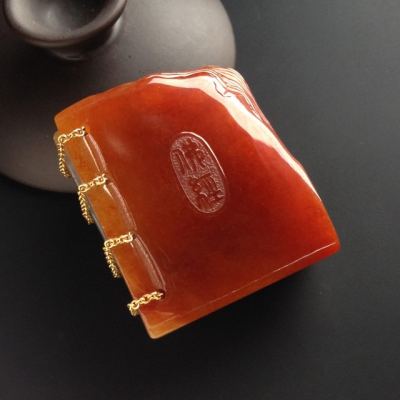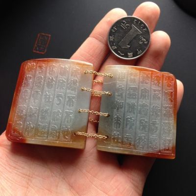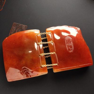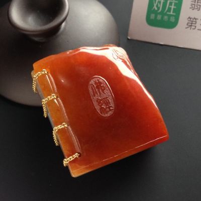 瑞丽工陈茂良作品 糯冰种红翡 佛经小摆件