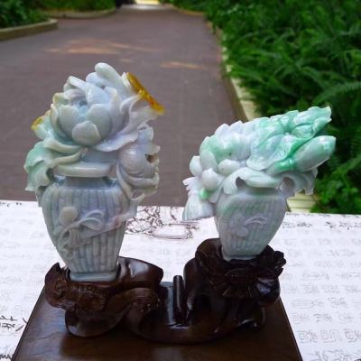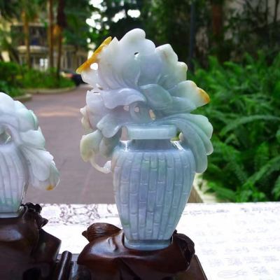 老坑糯种三彩 翡翠A货 花瓶摆件