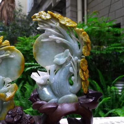 翡翠A货 老坑水润黄翡 花好月圆喜上眉梢摆件