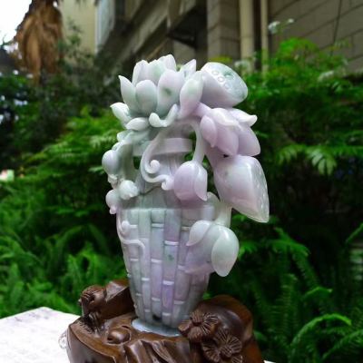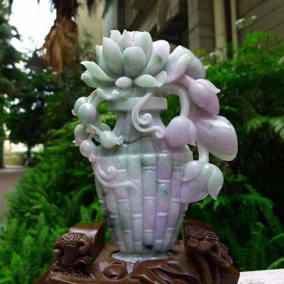 翡翠A货 老坑紫罗兰飘绿 平平安安花瓶摆件