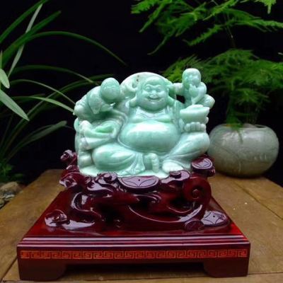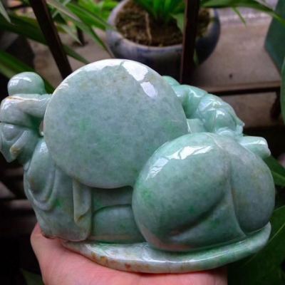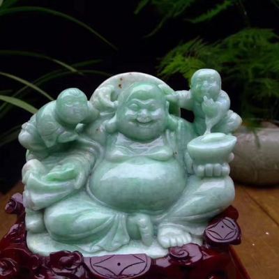 糯冰满绿 笑口常开弥勒厚装摆件