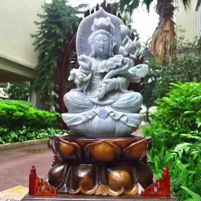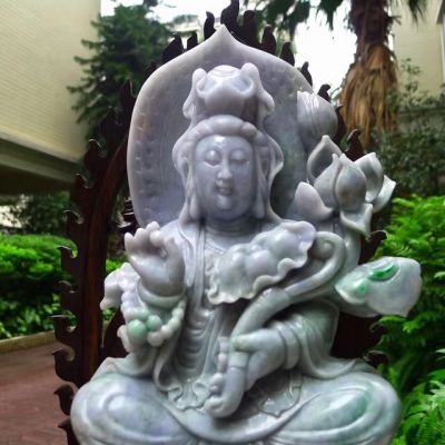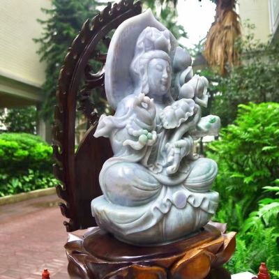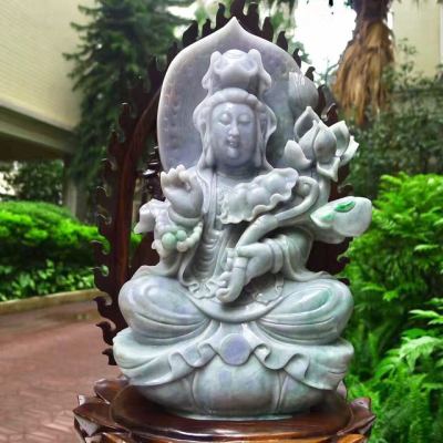 老坑水润春带彩 翡翠A货 观世音菩萨摆件