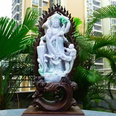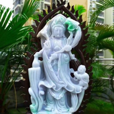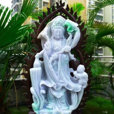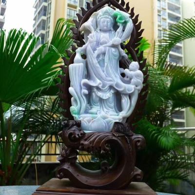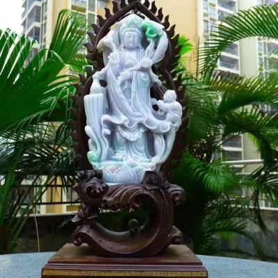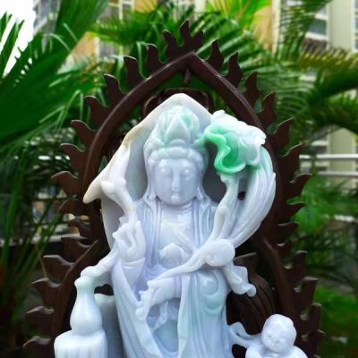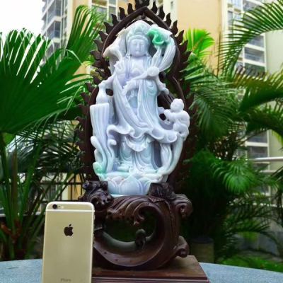 老坑精雕糯冰春带彩 大件莲花观音菩萨