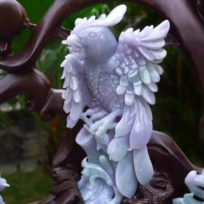 冰糯春带彩 天然翡翠A货 英明神武安居乐业鹦鹉摆件