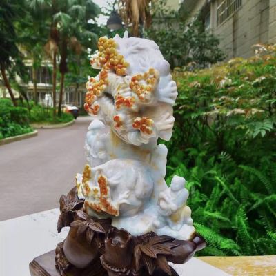 老坑春彩飘黄翡 翡翠A货 张果老赏梅遇送财童子摆件