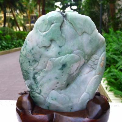 在选购翡翠摆件时,我们尽量选择天然温润透