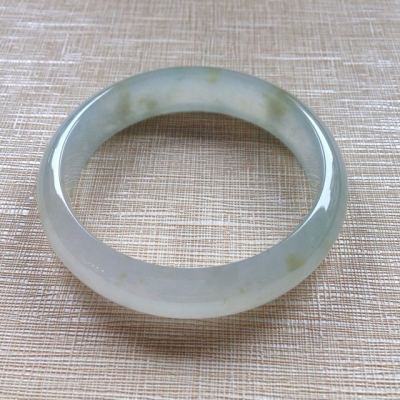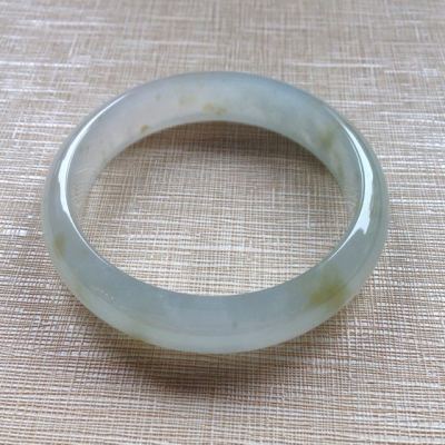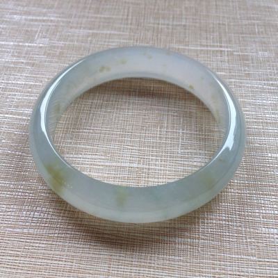 冰种飘黄翡手镯 缅甸天然翡翠平安镯 57.3-13.9-7.4mm