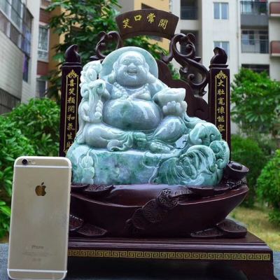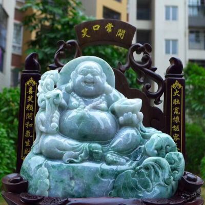 在选购翡翠摆件时,我们尽量选择天然温润透