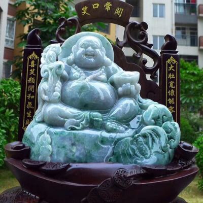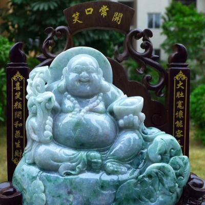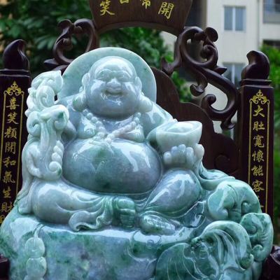 天然翡翠A货 糯冰紫罗兰飘花 笑口常开笑佛摆件