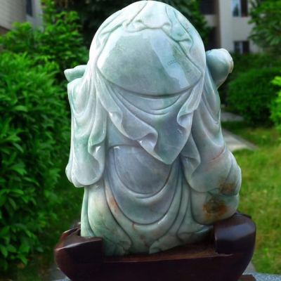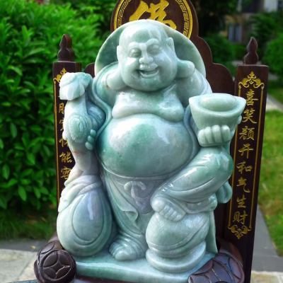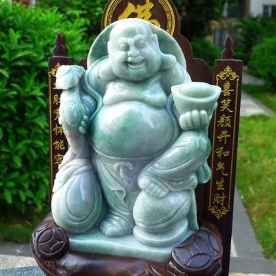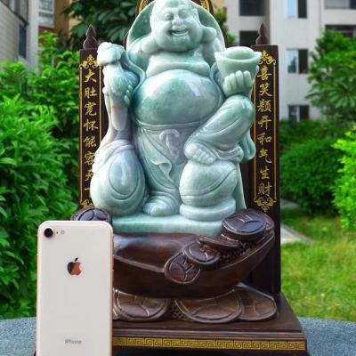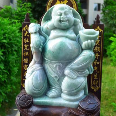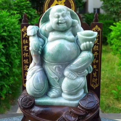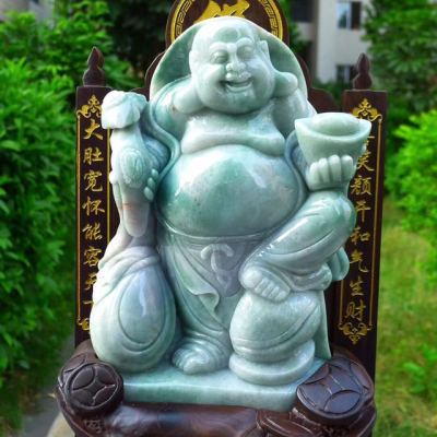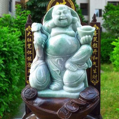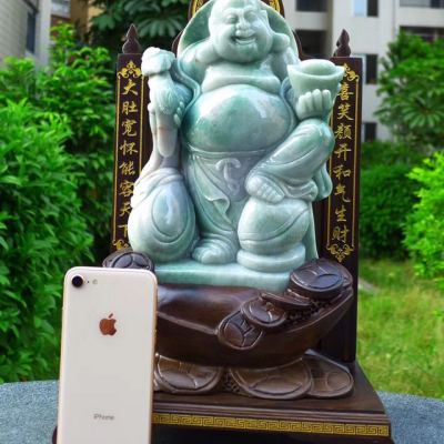 糯冰种浅绿 翡翠A货 大件笑佛摆件