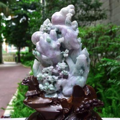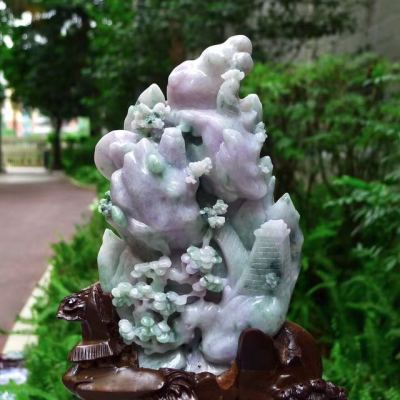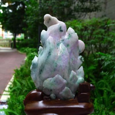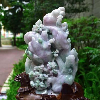 老坑糯种紫罗兰飘花 翡翠A货 步步高升山水摆件