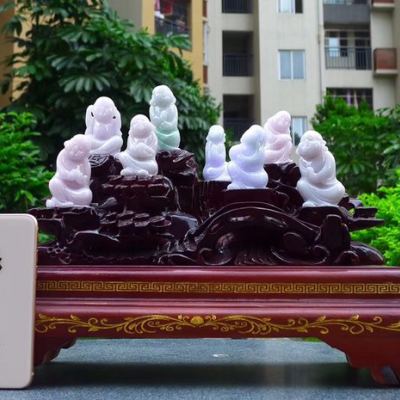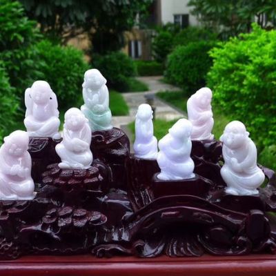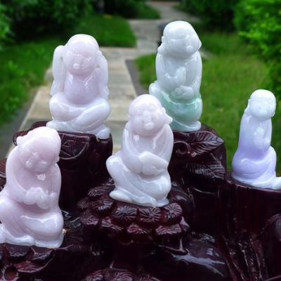 翡翠A货 冰透紫罗兰 众佛护主童佛摆件