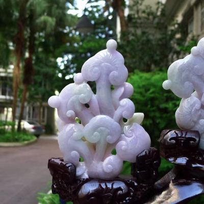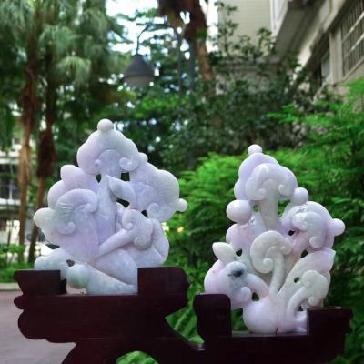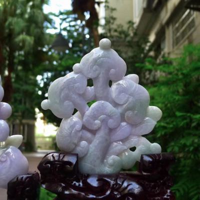 翡翠A货 老坑水润紫罗兰 精工如意一生摆件
