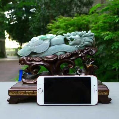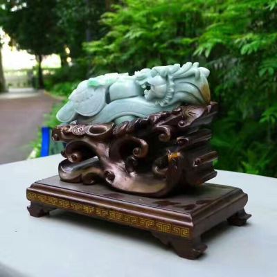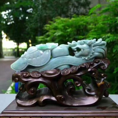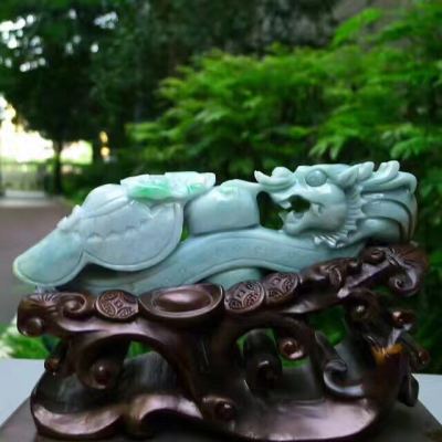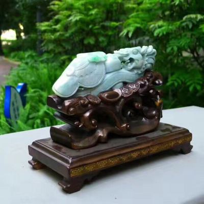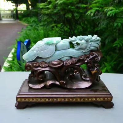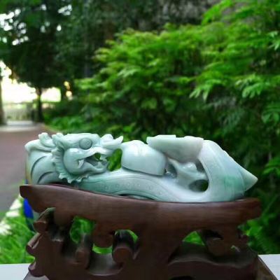 翡翠A货 老坑飘绿 龙腾盛世龙勾摆件