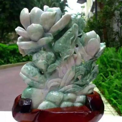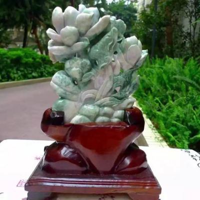 黄加绿翡翠A货 一路发达一品清莲摆件
