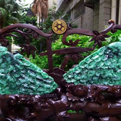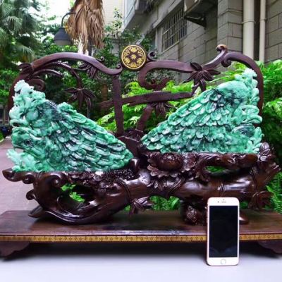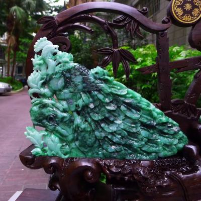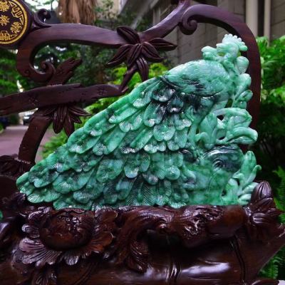 翡翠A货 老坑满绿飘花 孔雀开屏凤凰摆件