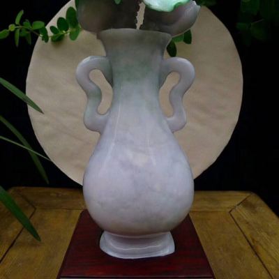 糯种春带彩翡翠 花瓶盆景翡翠摆件